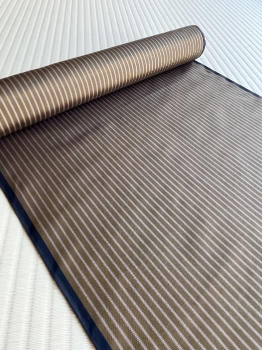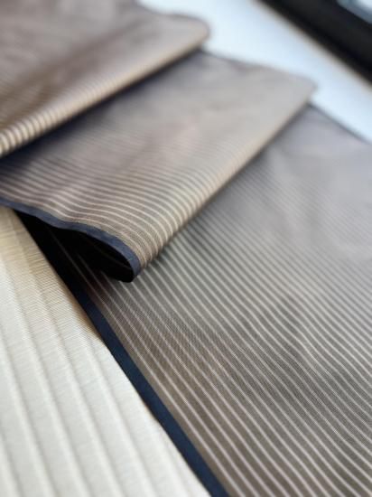 焦茶の縞には朱色の糸が織り込まれており、